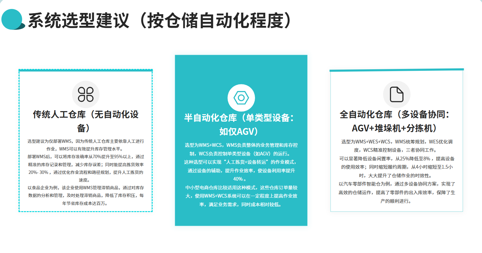 交互对象 | 管理人员、OMS(订单管理系统)、ERP | WMS、WCS、现场作业人员 | 自动化设备(AGV、堆垛机、输送机等) |