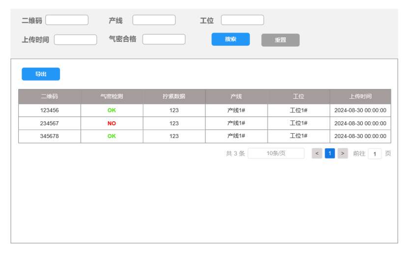 涵盖扫码数据、气密检查数据、拧紧数据的相关接口。